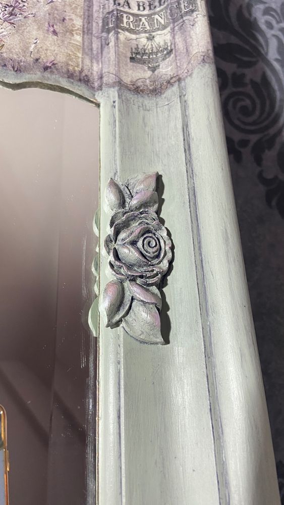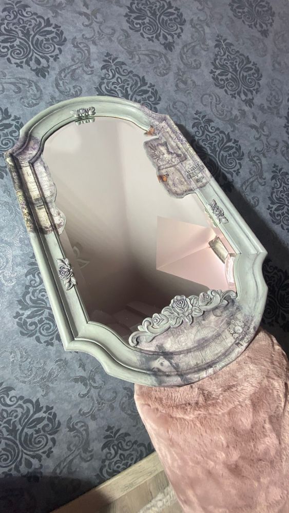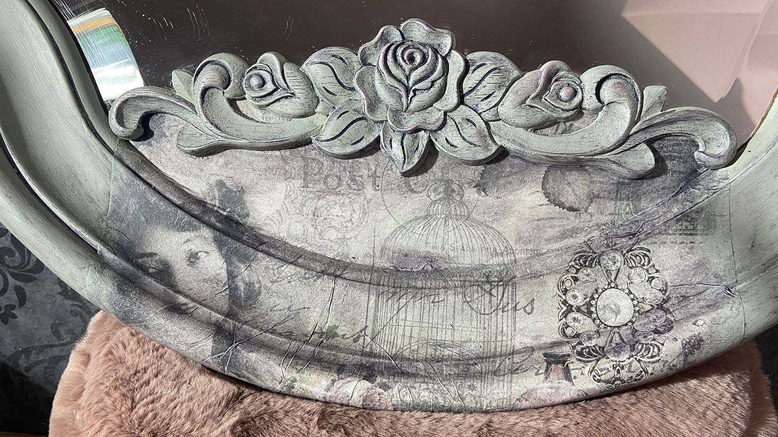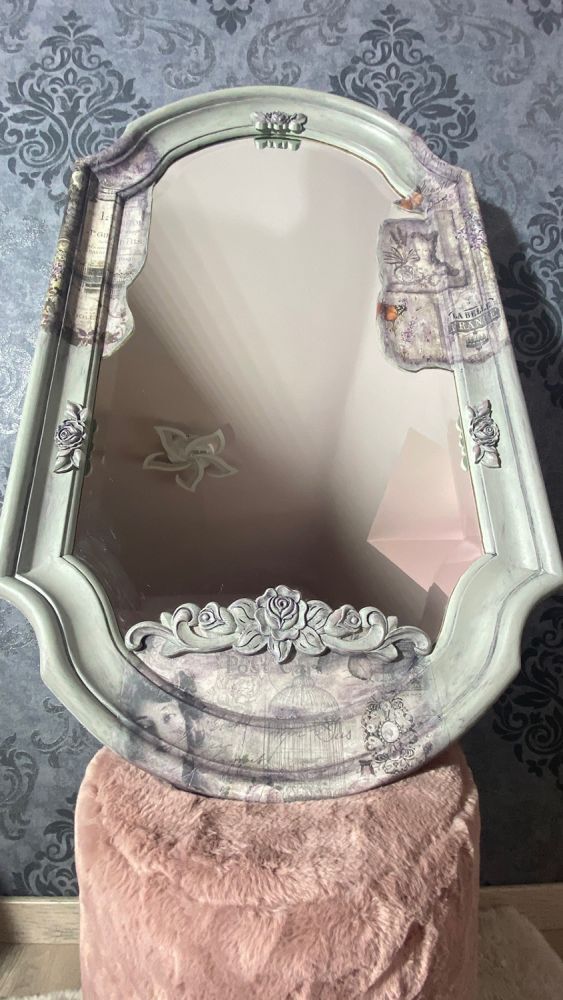Wand-Spiegel im romantischen Vintage Stil mit Holzornamenten und Decoupage-Elementen € 120